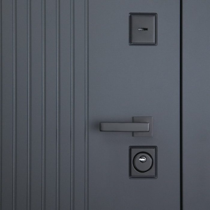 Фурнитура: Ручка, ночная задвижка, глазок на квадратной розетке. Цвет фурнитуры «черный». Смотрите также: ДВЕРНЫЕ ГАДЖЕТЫ