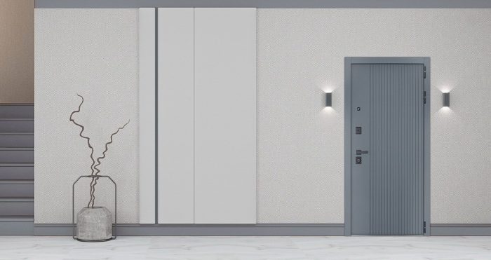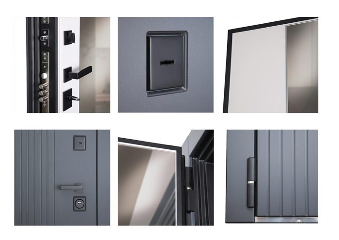 Дополнительно: Евроцилиндр К-В (перфокарта). Броненакладка врезная. Штырь противосъемный (3 шт.). Порог из нержавеющей стали (цвет «хром»).