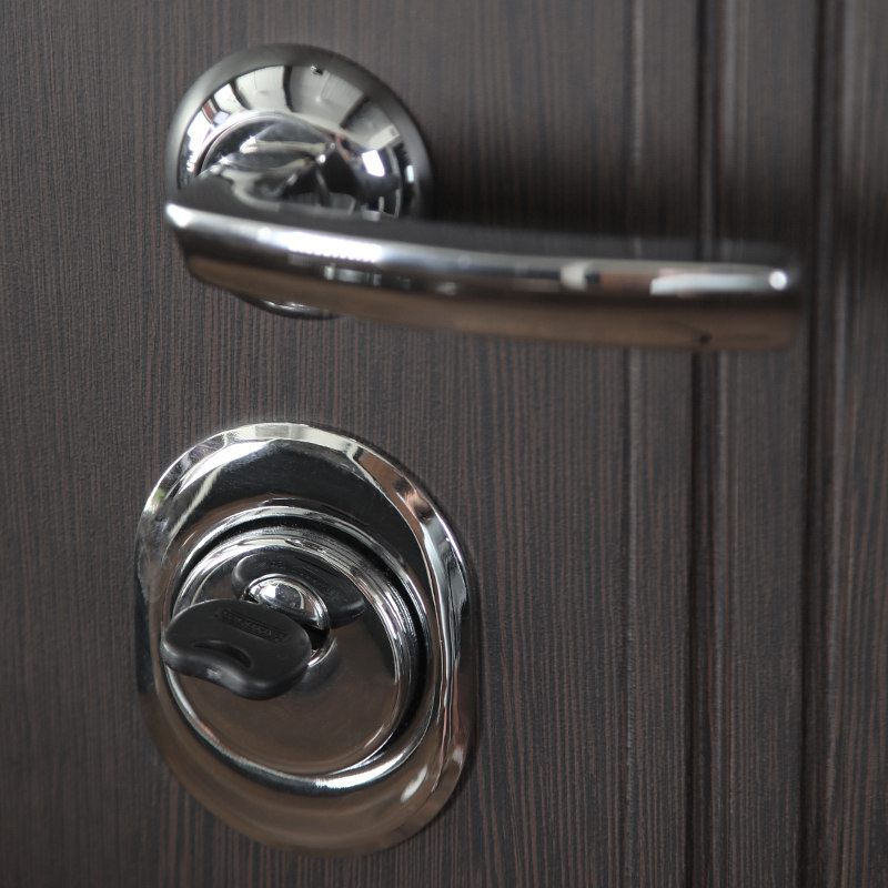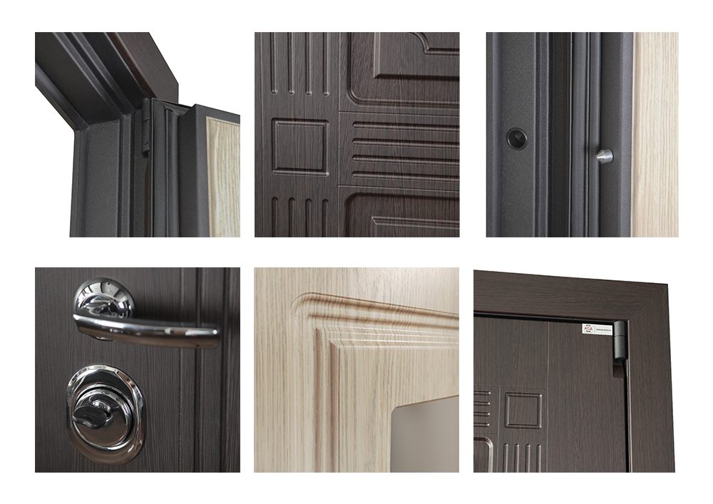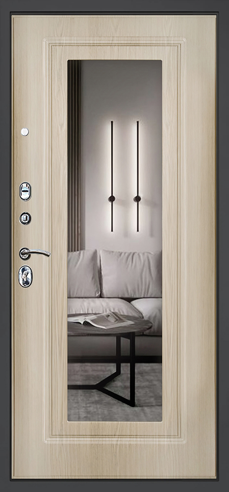 Фурнитура: Ручка, ночная задвижка, глазок на круглой розетке. Цвет «хром». Смотрите также: ДВЕРНЫЕ ГАДЖЕТЫ