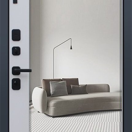 Фурнитура: Ручка, ночная задвижка, глазок на круглой розетке. Цвет «хром». Смотрите также: ДВЕРНЫЕ ГАДЖЕТЫ