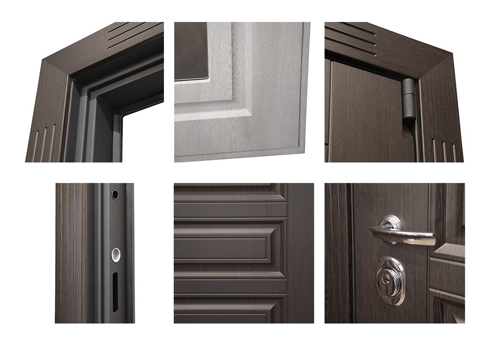 Дверная коробка: Короб утолщённый гнутый профиль, 3 контура уплотнения, Толщина (глубина) коробки 117 мм.