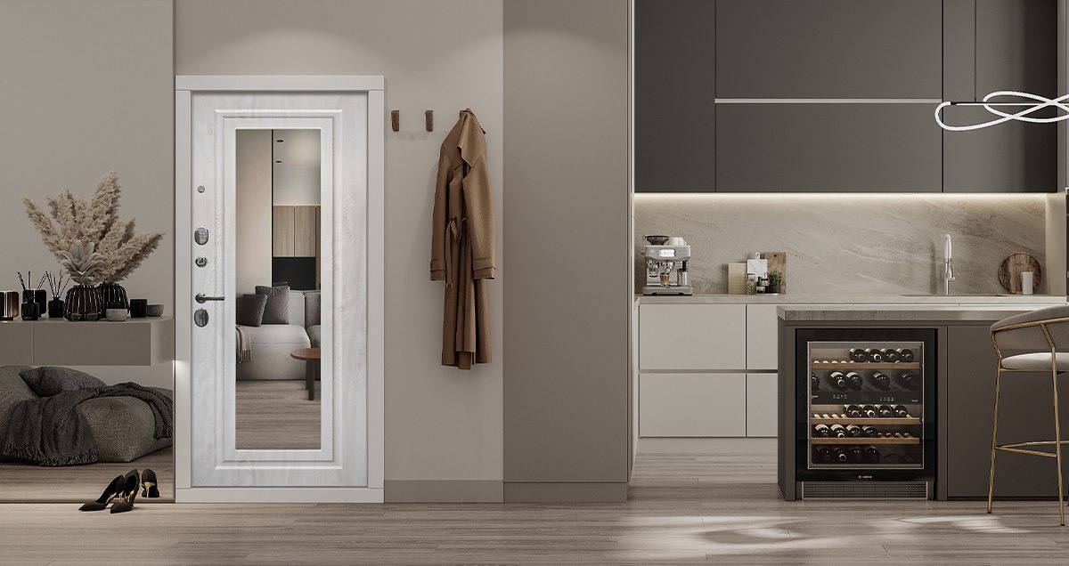 Главная Двери в квартиру Гермес Стальная дверь «Гермес NEW» с зеркалом «Elit»