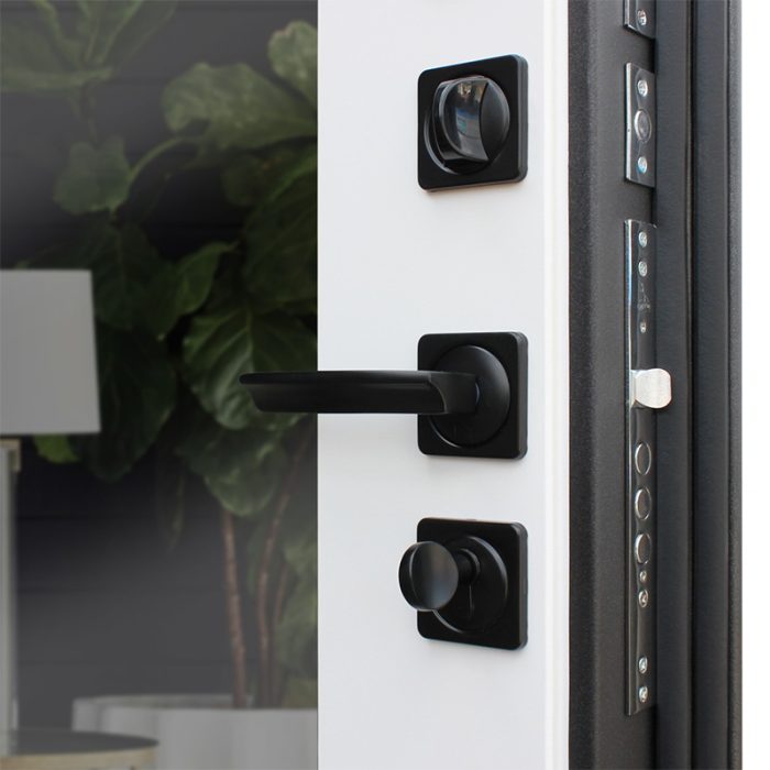 Фурнитура: Ручка, ночная задвижка, глазок на квадратной розетке (цвет «Черный»). Смотрите также: ДВЕРНЫЕ ГАДЖЕТЫ