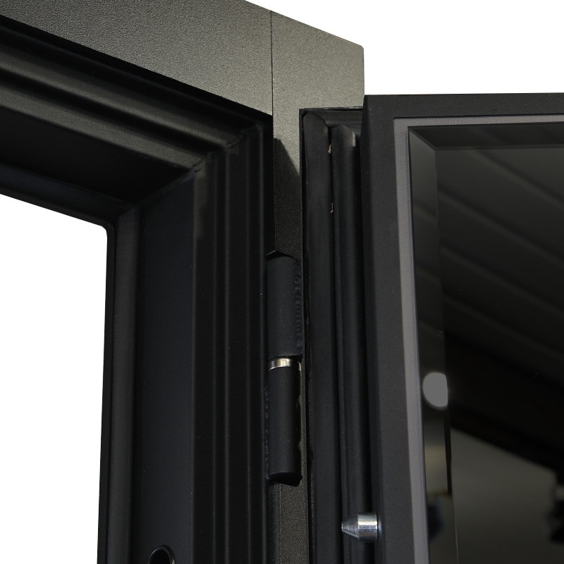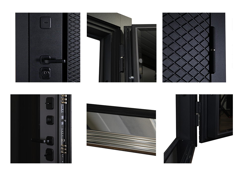 Дополнительно: Евроцилиндр К-В (перфокарта). Броненакладка врезная. Штырь противосъемный (3 шт). Порог из нержавеющей стали (цвет «хром»).