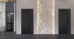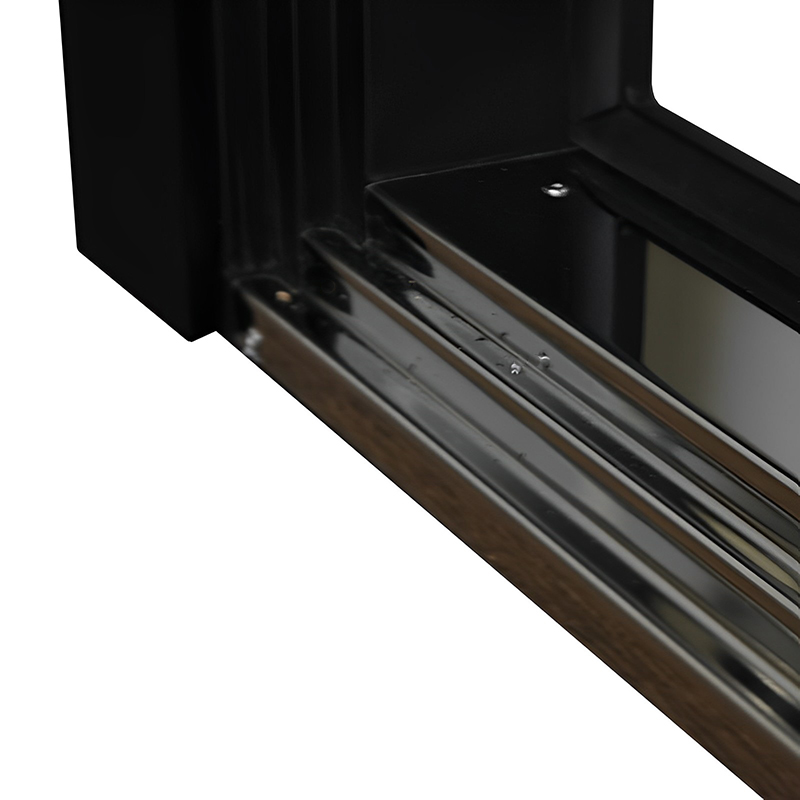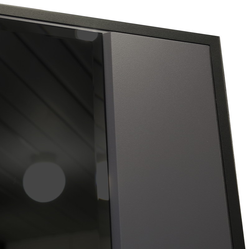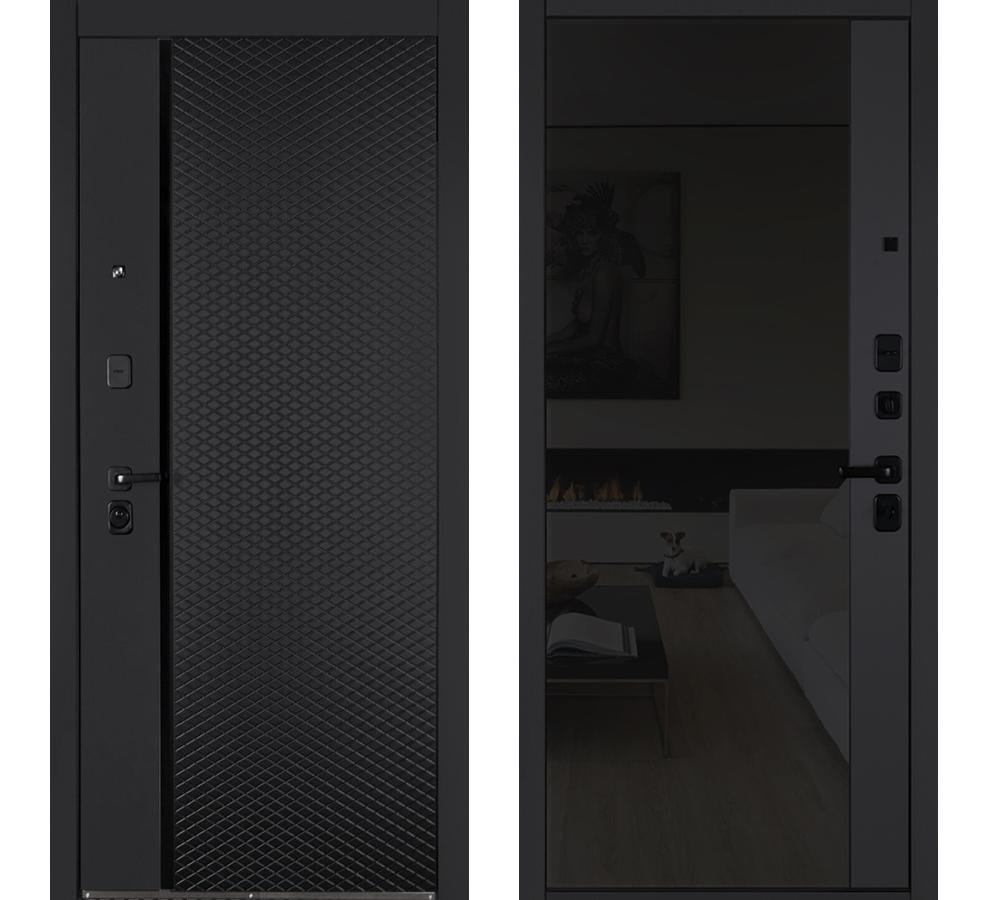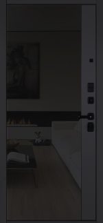 Внутренняя отделка: Экошпонированная панель МДФ 16 мм. Цвет «графит». Широкая вставка из черного лакобеля с фацетом.
