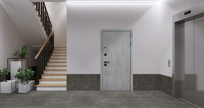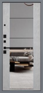 Стальная дверь «Дуэт-Б»* с зеркалом — отличный вариант для покупателей, ценящих необычные интерьерные решения и функциональность. Во внутренней отделке модели используется встроенное зеркало — дизайнерский элемент, пользующийся повышенным спросом среди покупателей . Безопасность модели представляют два надежных замка с цилиндровым и сувальдным механизмом.*  «Дуэт-Б» — буквой «Б» в названии отмечаются модели серии дверей «Дуэт», выполненные в отделке из экошпона в цвете «бетон светлый, бетон темный»