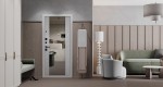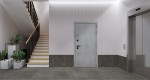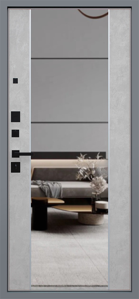 Внутренняя отделка: Экошпонированная панель МДФ 16 мм. Цвет «бетон светлый». Большое зеркало. Вставки из вертикальных молдингов по краям зеркала (цвет «матовый хром»).
