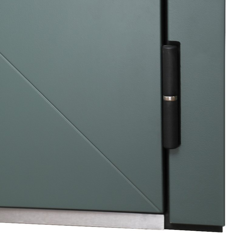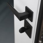 Фурнитура: Ручка–скоба Art 50*25 Inox Basic Mechanical (цвет ral 9005). Внутри: ручка RedLine, ночная задвижка, глазок на квадратной розетке (цвет «черный»). Смотрите также: ДВЕРНЫЕ ГАДЖЕТЫ