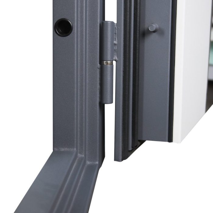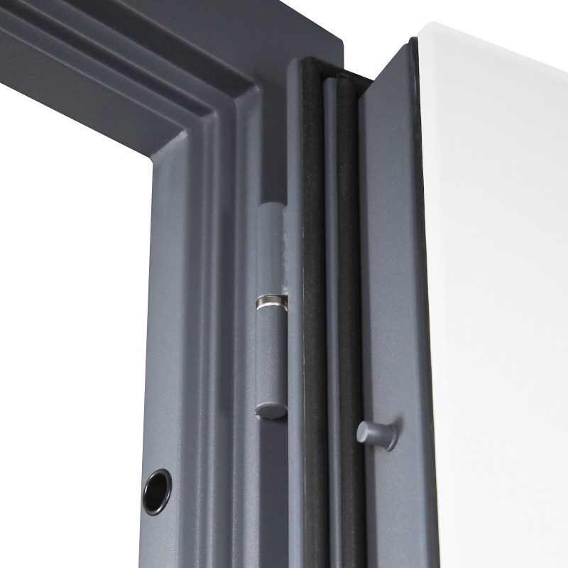 Дверная коробка: Утолщенный гнутый профиль, 3 контура уплотнения. Толщина (глубина) коробки по металлу 115 мм.