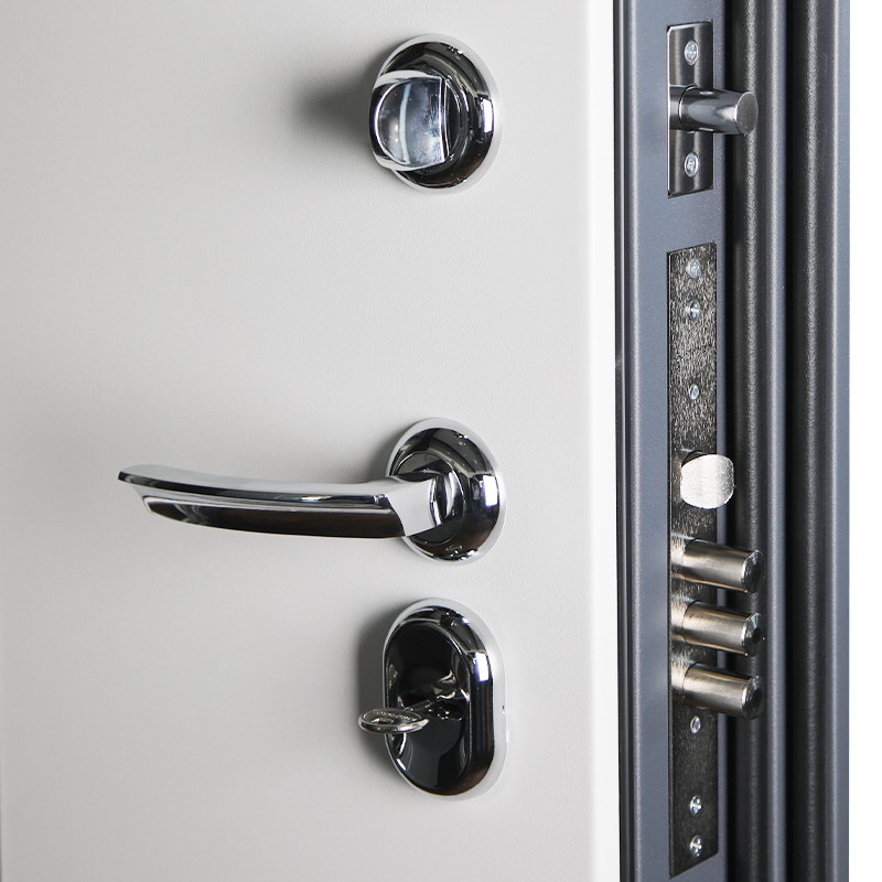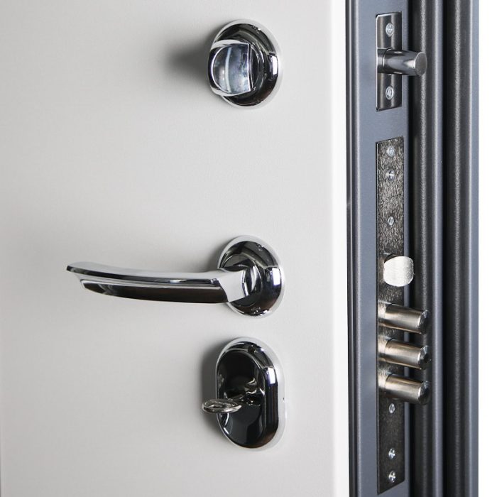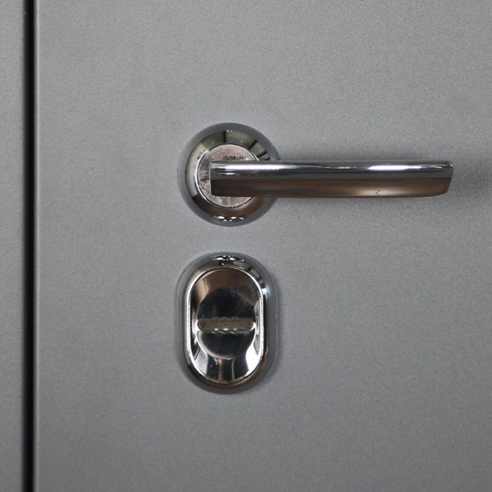 Фурнитура: Ручка, ночная задвижка, глазок на круглой розетке. Цвет «хром». Смотрите также: ДВЕРНЫЕ ГАДЖЕТЫ