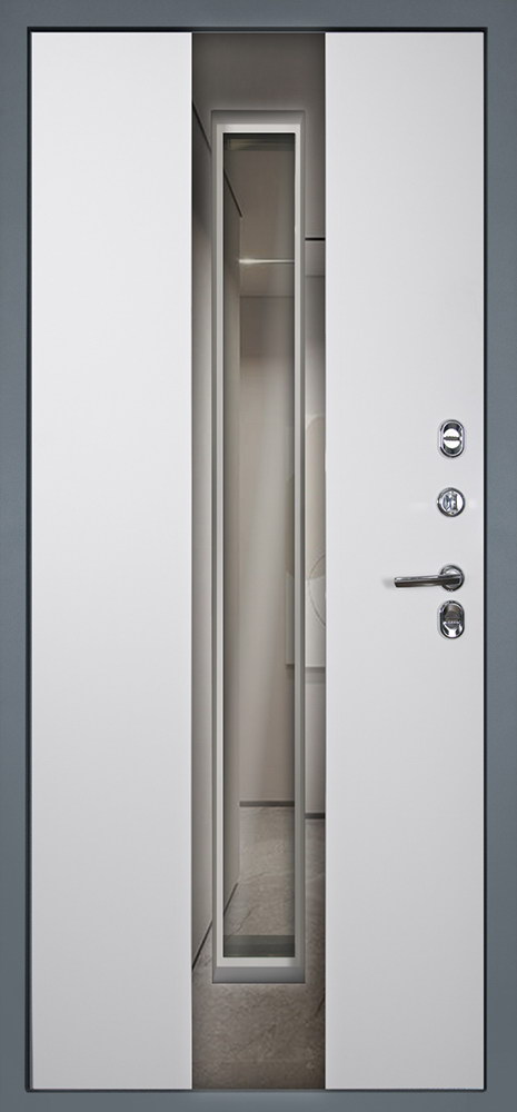Уникальность модели «Дива» - декоративная внутренняя панель с большим зеркалом. Зеркало это современный и популярный элемент отделки, который позволяет сделать входную дверь не только оплотом безопасности, но и весьма полезным и функциональным предметом интерьера.
