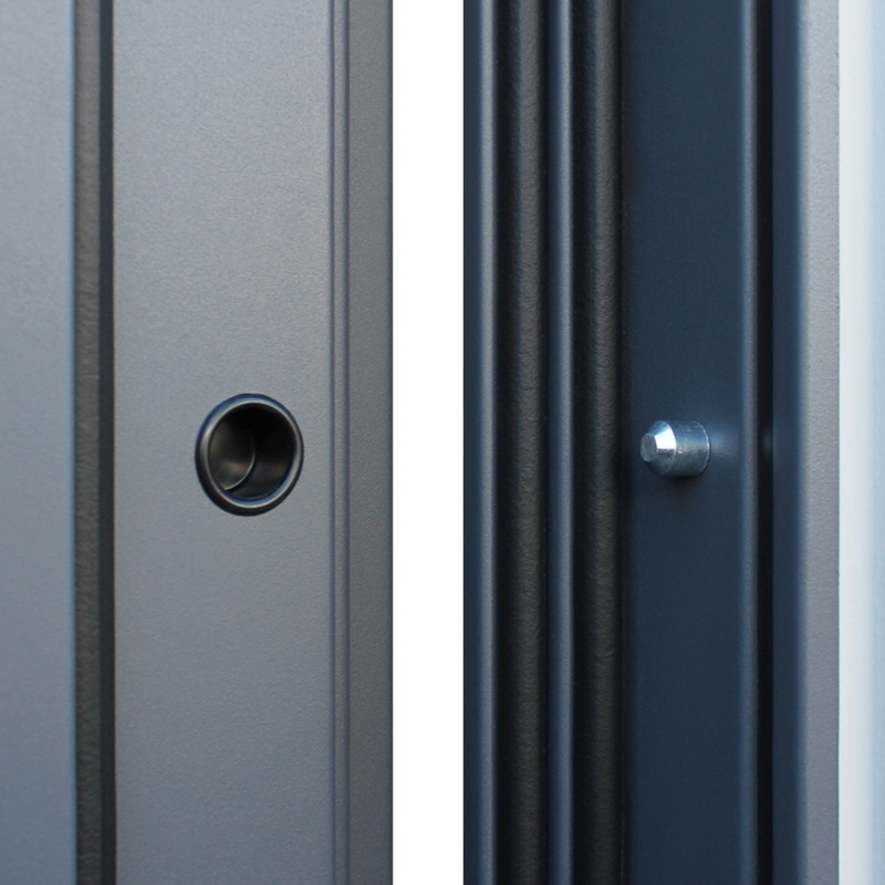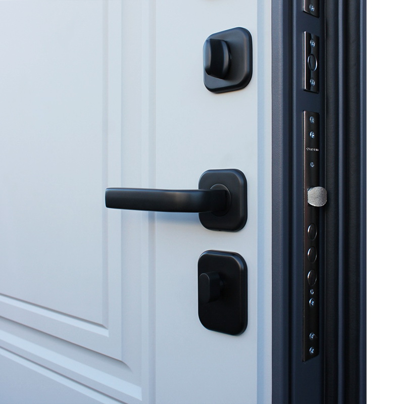 Фурнитура: Ручка, ночная задвижка, глазок на квадратной розетке. Цвет фурнитуры «черный». Смотрите также: ДВЕРНЫЕ ГАДЖЕТЫ