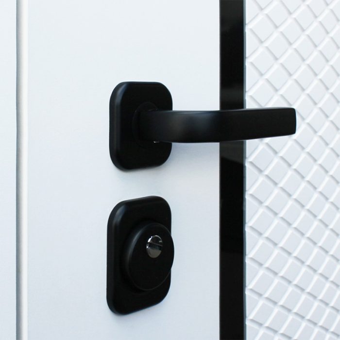 Фурнитура: Ручка, ночная задвижка, глазок на квадратной розетке. Цвет «черный».Смотрите также: ДВЕРНЫЕ ГАДЖЕТЫ