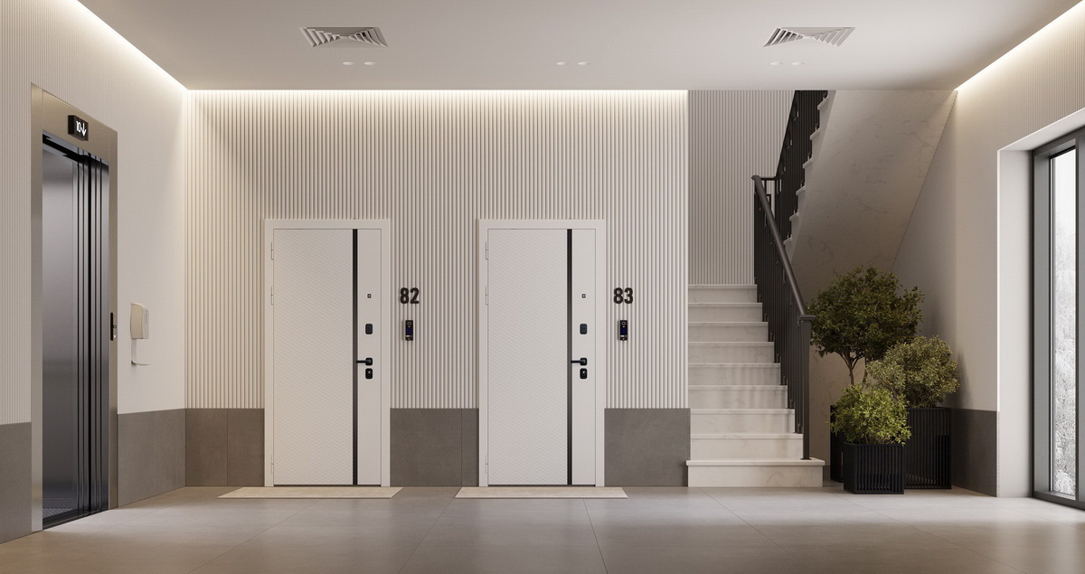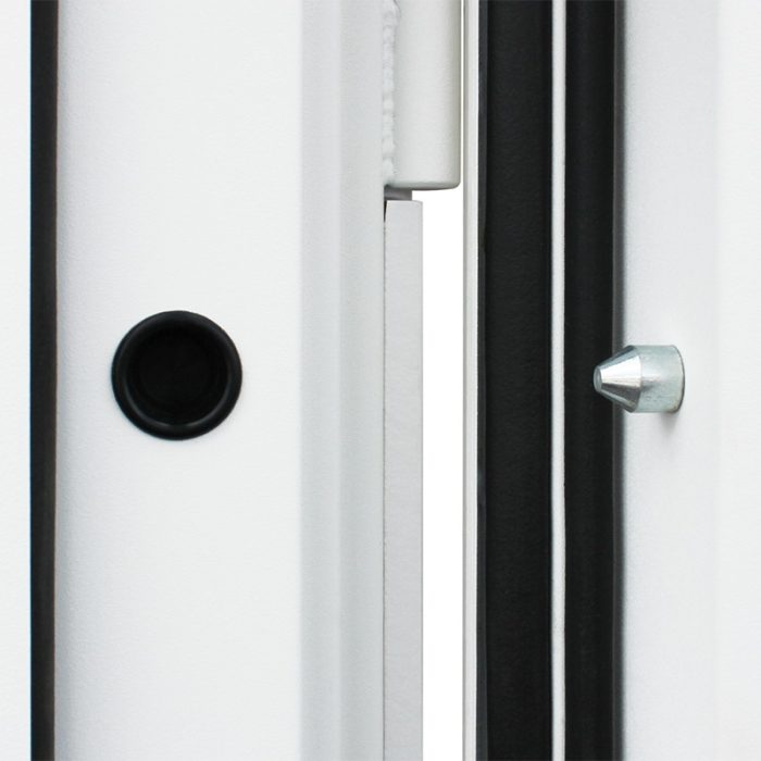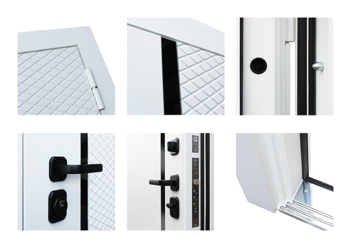 Дополнительно: Евроцилиндр К-В (перфокарта). Броненакладка врезная. Накладки со шторками-автомат. Штырь противосъемный (3 шт). Порог из нержавеющей стали (цвет «хром»).