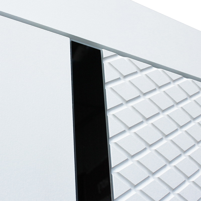 Внутренняя отделка: Экошпонированная панель МДФ 10 мм. Цвет «белый матовый». Вертикальная вставка из черного глянцевого лакобеля.