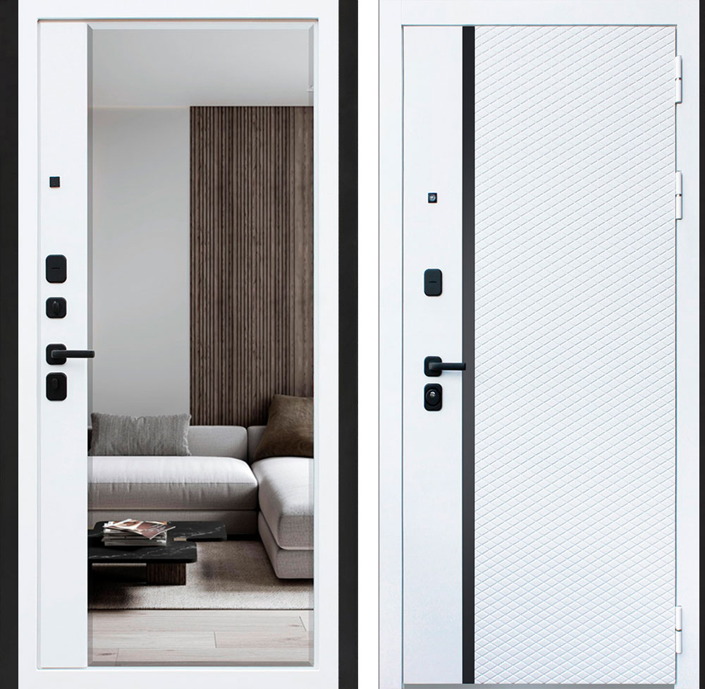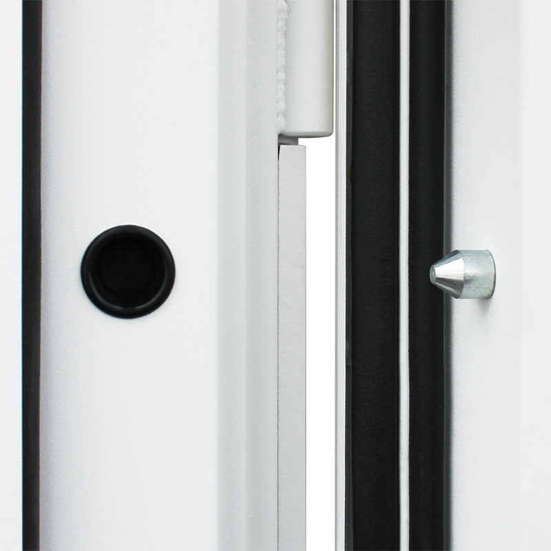 Дополнительно: Евроцилиндр К-В (перфокарта). Броненакладка врезная. Штырь противосъемный (3 шт.). Порог из нержавеющей стали (цвет «хром»).