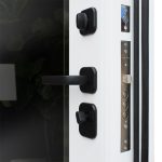 Фурнитура: Ручка, ночная задвижка, глазок на квадратной розетке. Цвет «черный».Смотрите также: ДВЕРНЫЕ ГАДЖЕТЫ