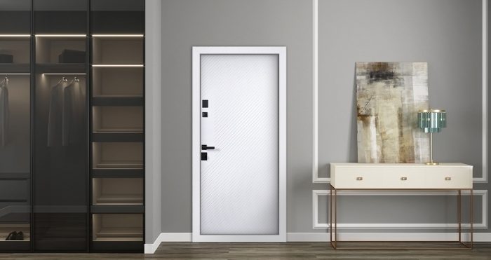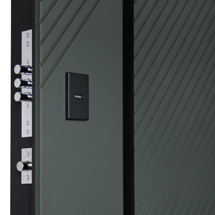 Дополнительно: Евроцилиндр К-В перфокарта. Броненакладка врезная. Штырь противосъемный (3 шт.). Порог из нержавеющей стали (цвет «хром»).