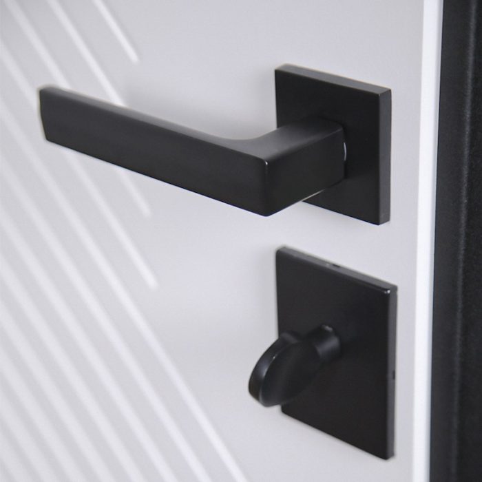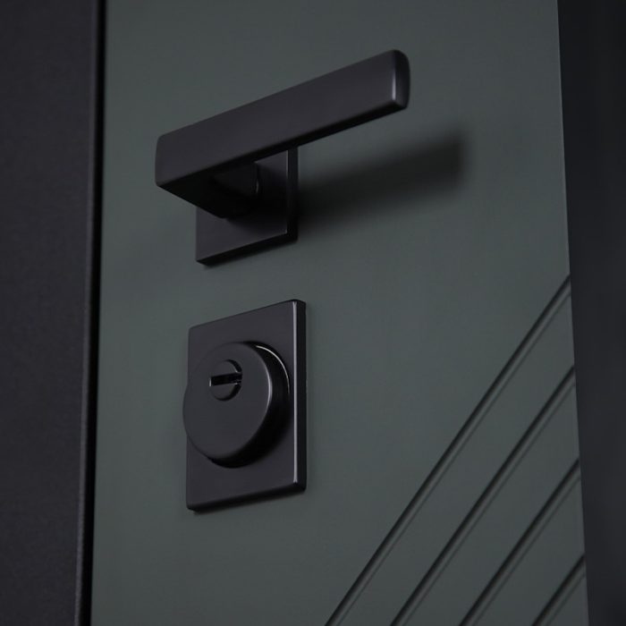 Фурнитура: Ручка, ночная задвижка, глазок на квадратной розетке. Смотрите также: ДВЕРНЫЕ ГАДЖЕТЫ