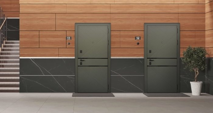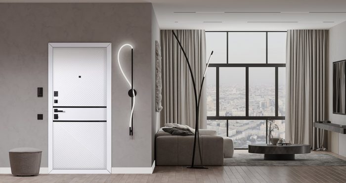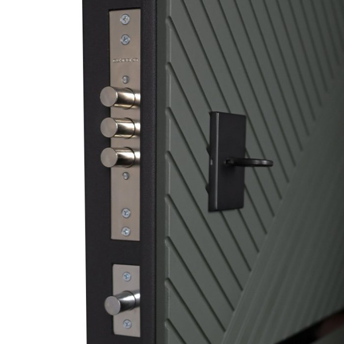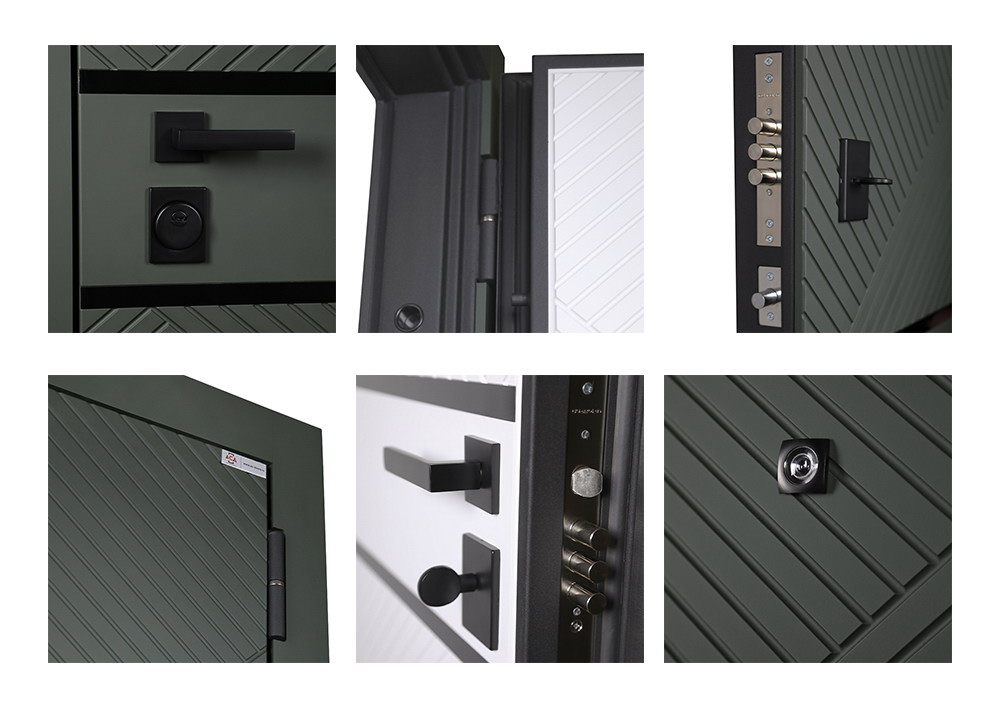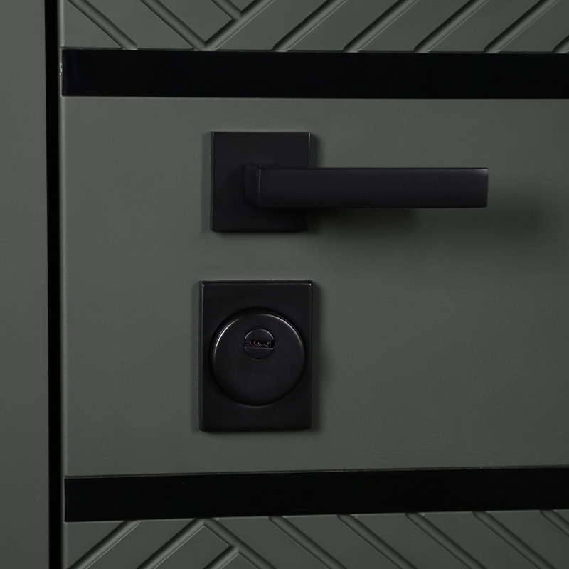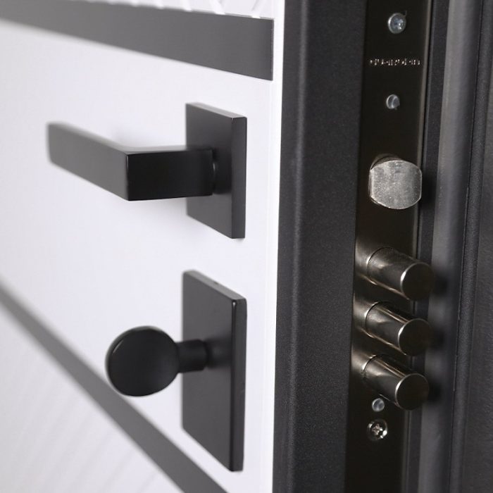Фурнитура: Ручка, ночная задвижка, глазок на квадратной розетке (цвет «черный матовый»). Смотрите также: ДВЕРНЫЕ ГАДЖЕТЫ