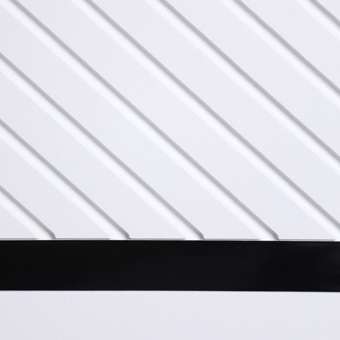 Внутренняя отделка: Панель МДФ 10 мм (цвет «белый матовый»). Объемная дизайнерская фрезеровка. Декоративные горизонтальные молдинги 10 мм (2 шт. цвет «черный»).