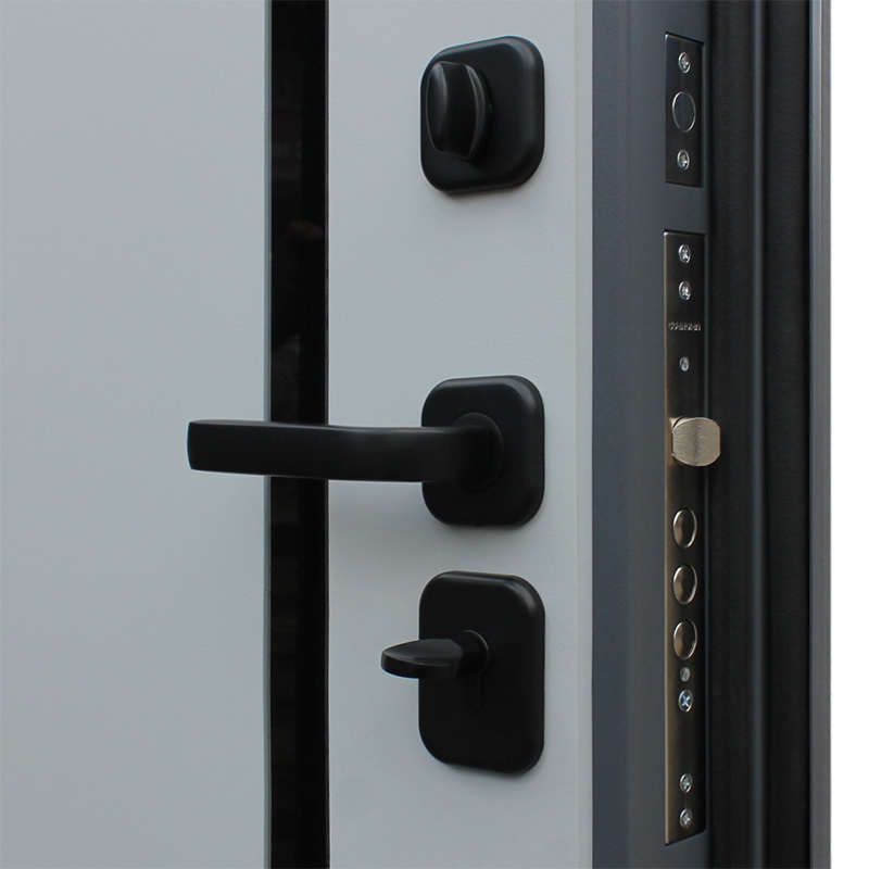 Фурнитура: Ручка, ночная задвижка, глазок на квадратной розетке. Цвет «черный». Смотрите также: ДВЕРНЫЕ ГАДЖЕТЫ