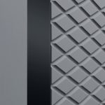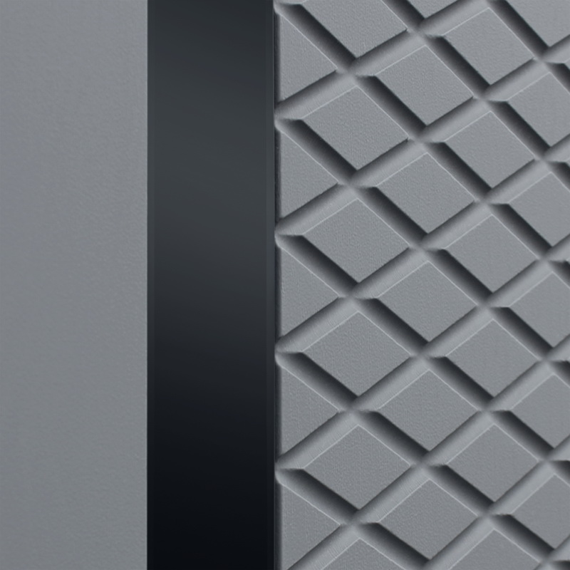 Внутренняя отделка: Экошпонированная панель МДФ 10 мм. Цвет «лайт софт грей». Вертикальная вставка из черного глянцевого лакобеля.