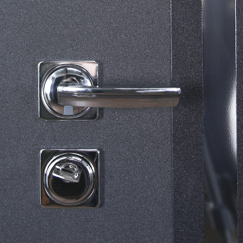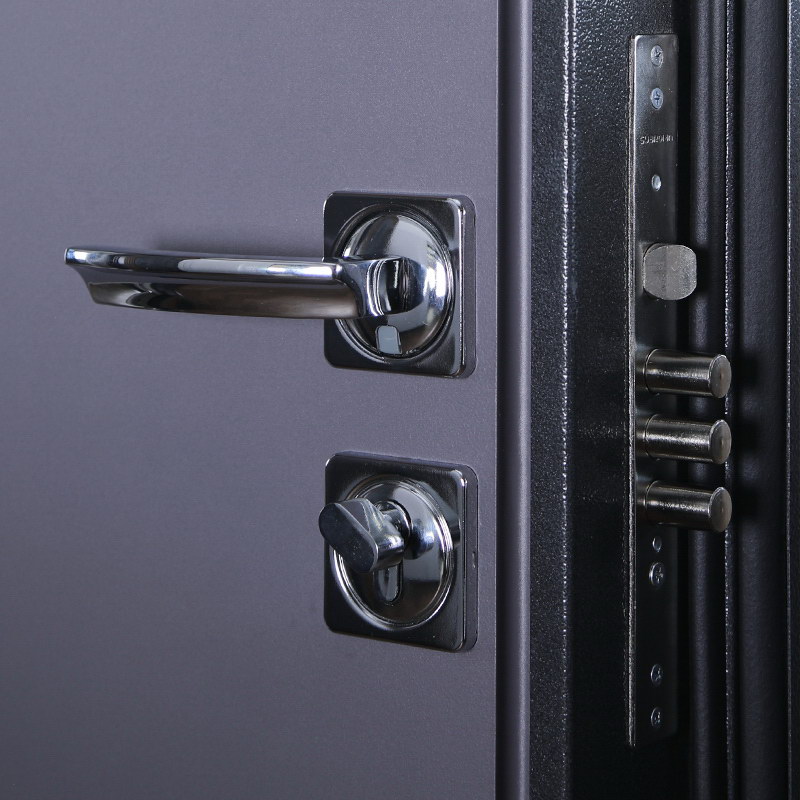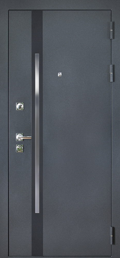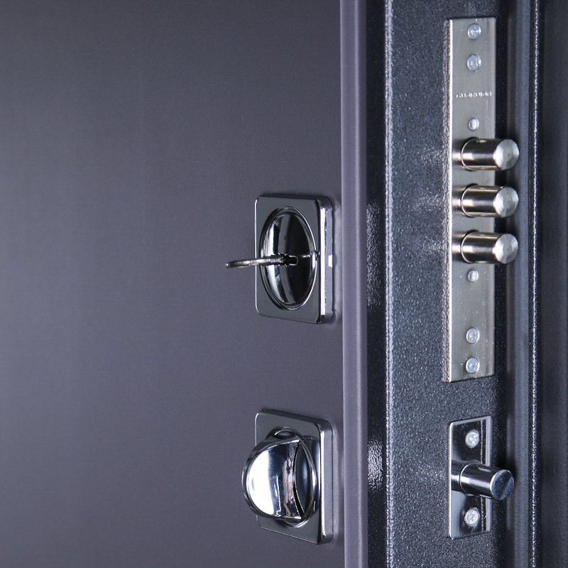 Дополнительно: Евроцилиндр К-В (перфокарта). Броненакладка врезная. Штырь противосъемный (3 шт). Порог из нержавеющей стали (цвет «хром»).
