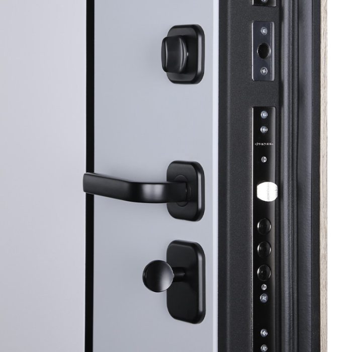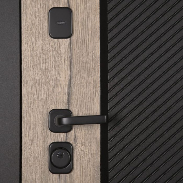 Фурнитура: Ручка, ночная задвижка, глазок на квадратной розетке. Цвет фурнитуры «черный». Смотрите также: ДВЕРНЫЕ ГАДЖЕТЫ