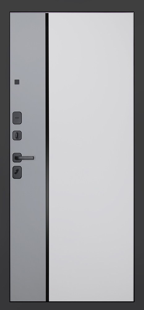 Внутренняя отделка: Экошпонированная панель МДФ 10 мм. Цветовая комбинация: «силк сноу» и «силк маус». Декоративная пластиковая вставка в черном цвете.