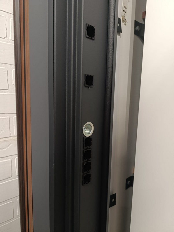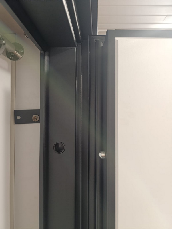 Дверная коробка: Короб утолщённый, гнутый профиль. 3 контура уплотнения. Толщина (глубина) коробки 117 мм.