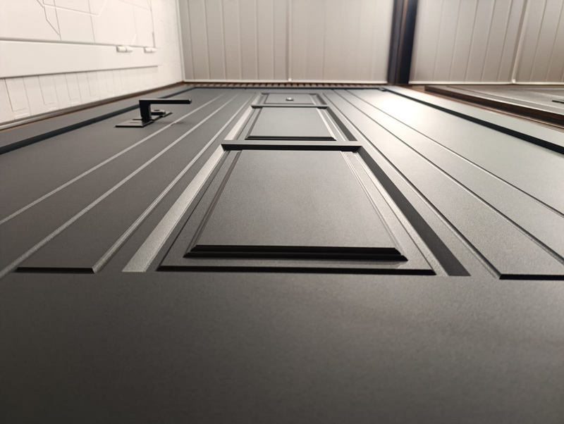 Внутренняя отделка: Панель МДФ 12 мм. Объемная фрезеровка. Цвет «графит», «белый матовый».