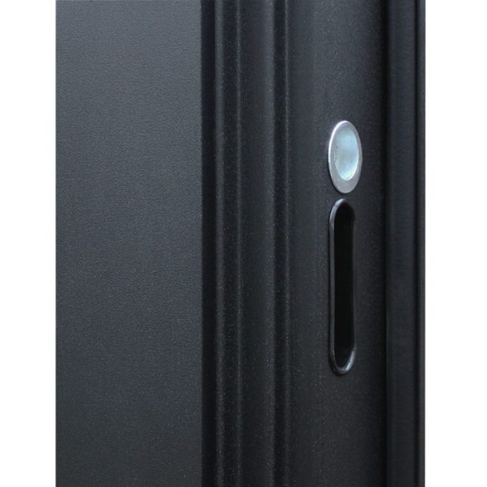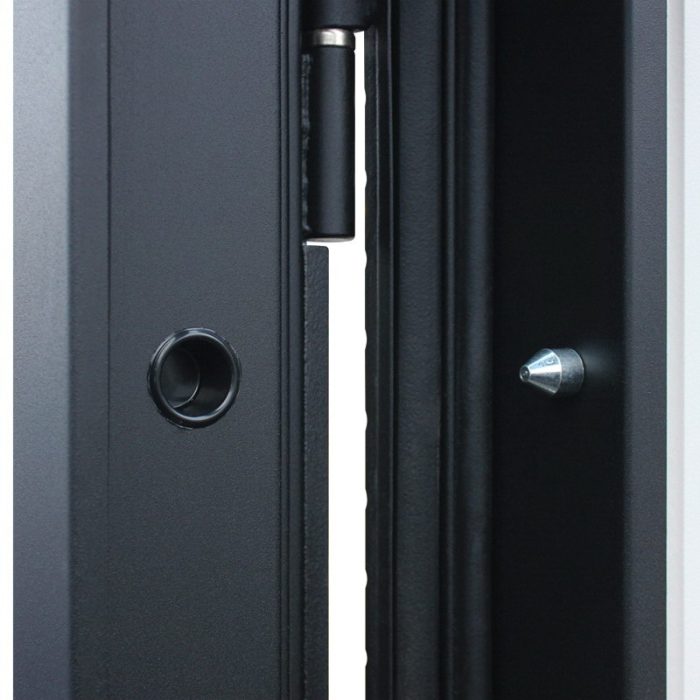 Дополнительно: Евроцилиндр К-В (перфокарта). Штырь противосъемный (3 шт.). Броненакладка врезная. Порог из нержавеющей стали (цвет «хром»).