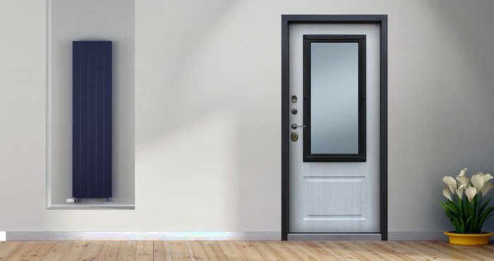Дополнительно: Евроцилиндр К-В перфокарта. Броненакладка врезная. Штырь противосъемный (3 шт.). Порог из нержавеющей стали (цвет «хром»).