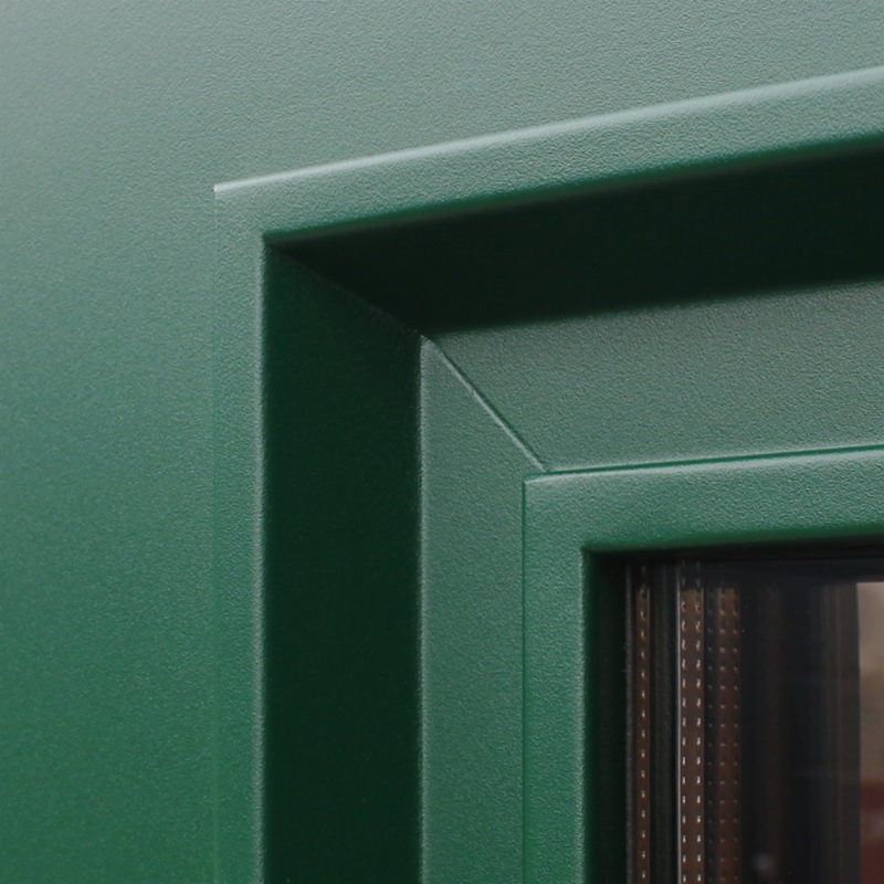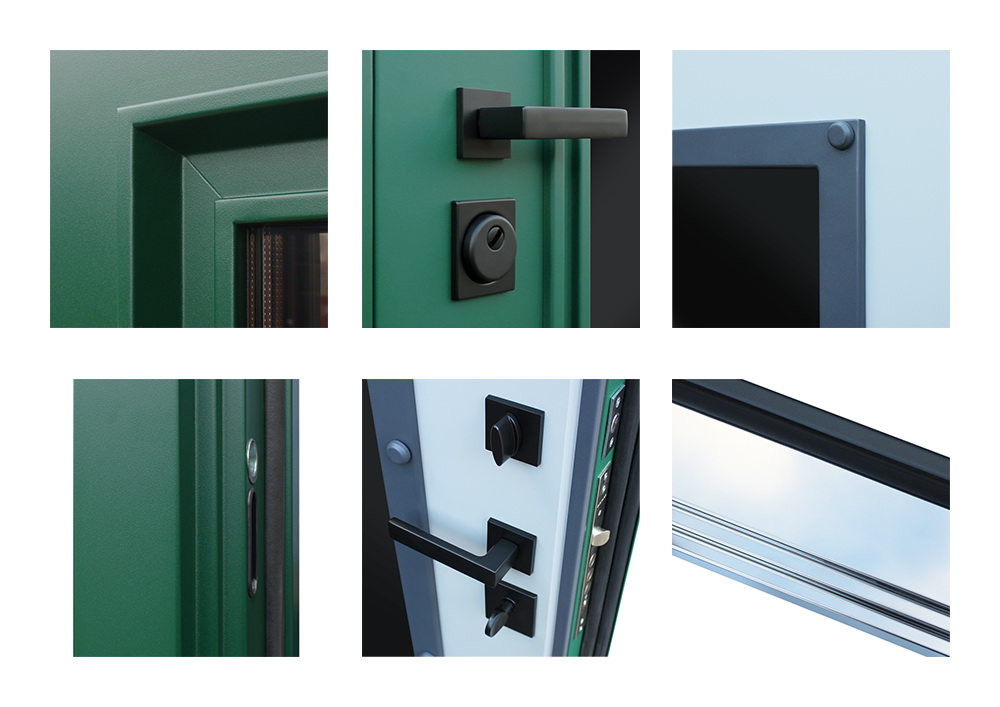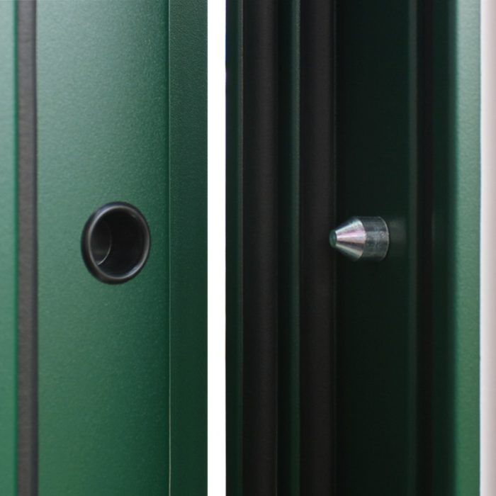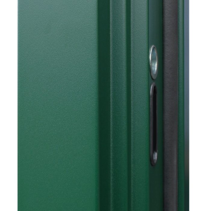 Покрытие: Два цвета покраски рамы и полотна: внешняя сторона — «муар зеленый», внутренняя сторона — «муар серый». Два слоя покрытия: первый слой — цинкогрунт, второй слой – порошковое покрытие