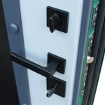 Фурнитура: Ручка, ночная задвижка на квадратной розетке. Цвет «черный». Смотрите также: ДВЕРНЫЕ ГАДЖЕТЫ