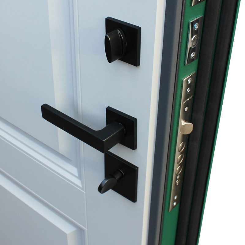 Дополнительно: Евроцилиндр К-В перфокарта. Броненакладка врезная. Штырь противосъемный (3 шт.). Порог из нержавеющей стали (цвет «хром»).