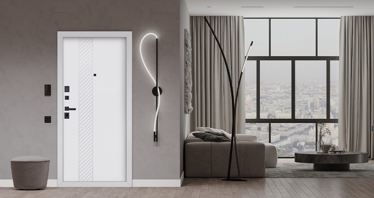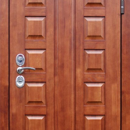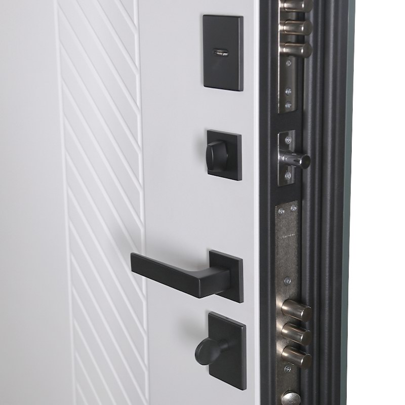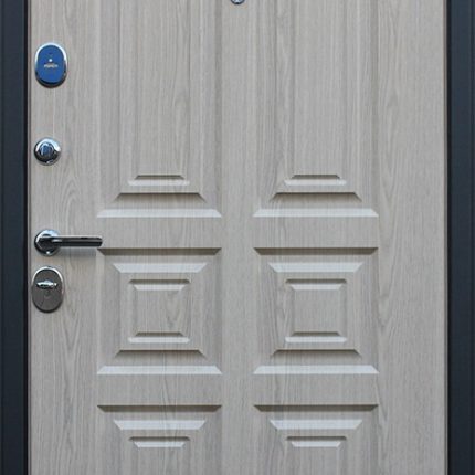 Дополнительно: Евроцилиндр К-В перфокарта. Броненакладка врезная. Штырь противосъемный (3 шт.). Порог из нержавеющей стали (цвет «хром»).