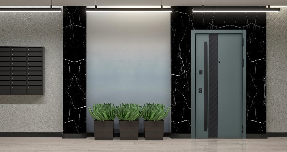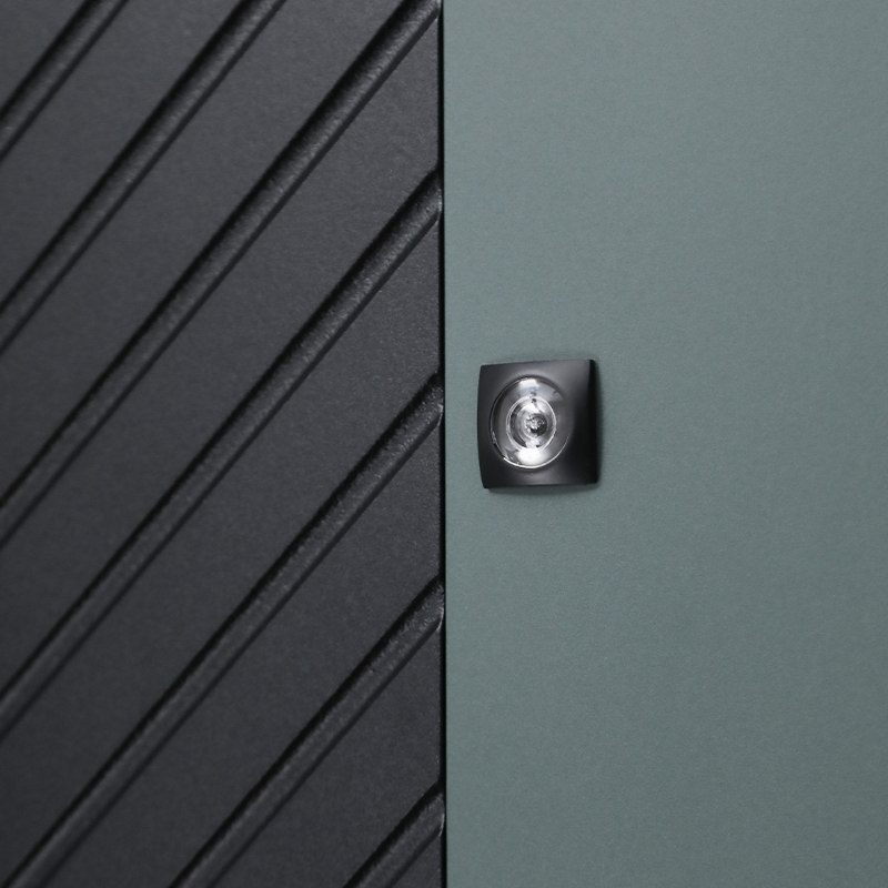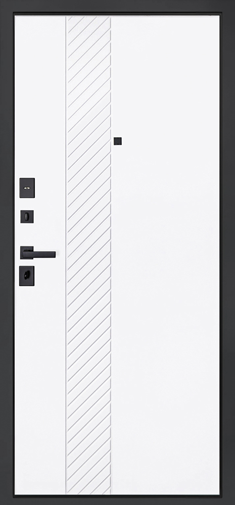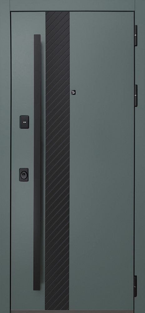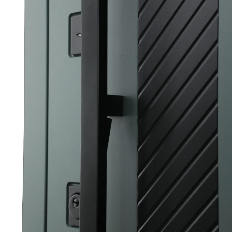 Фурнитура: Снаружи: ручка–скоба Art 50*25 Inox Basic Mechanical (цвет ral 9005). Внутри: ручка RedLine, ночная задвижка, глазок на квадратной розетке (цвет «черный»). Смотрите также: ДВЕРНЫЕ ГАДЖЕТЫ