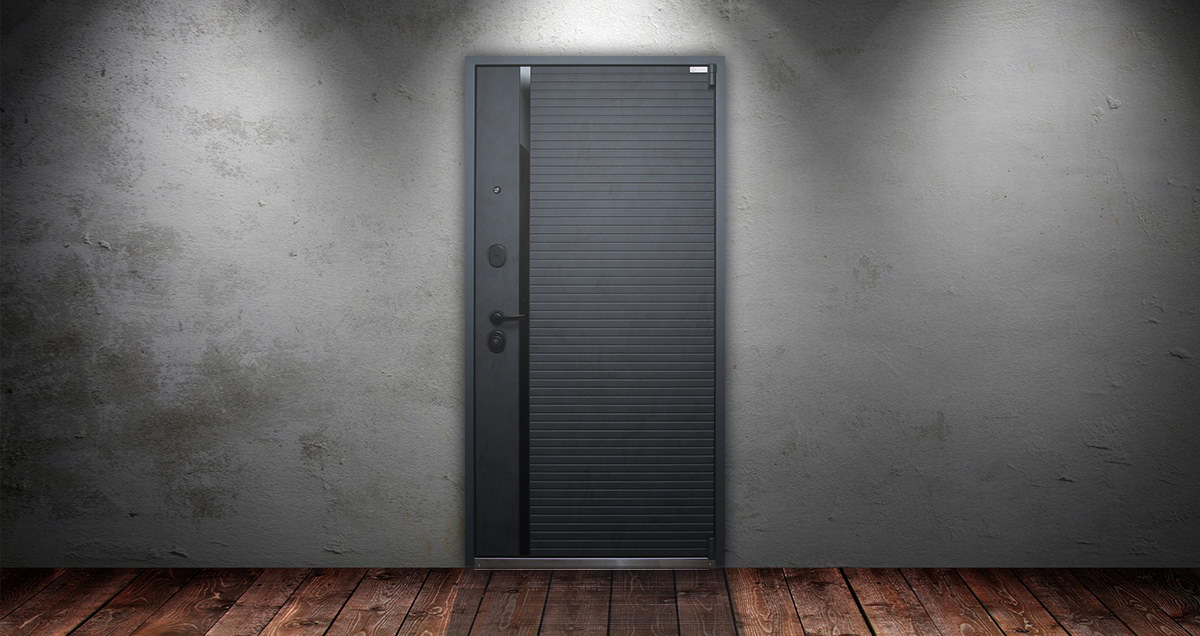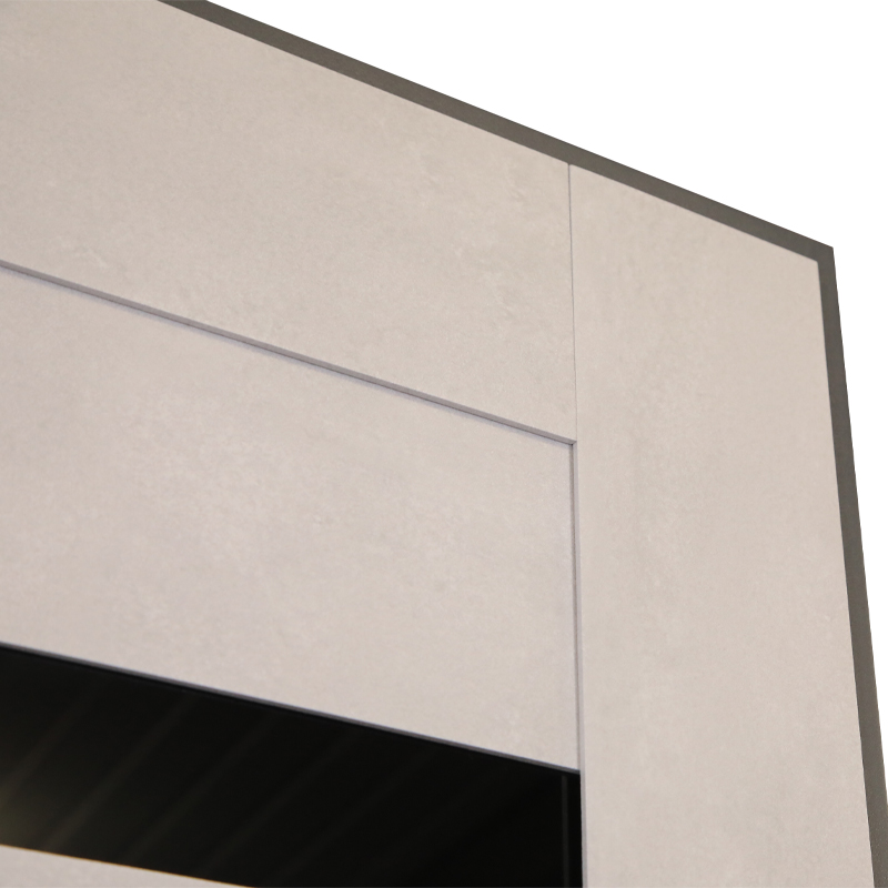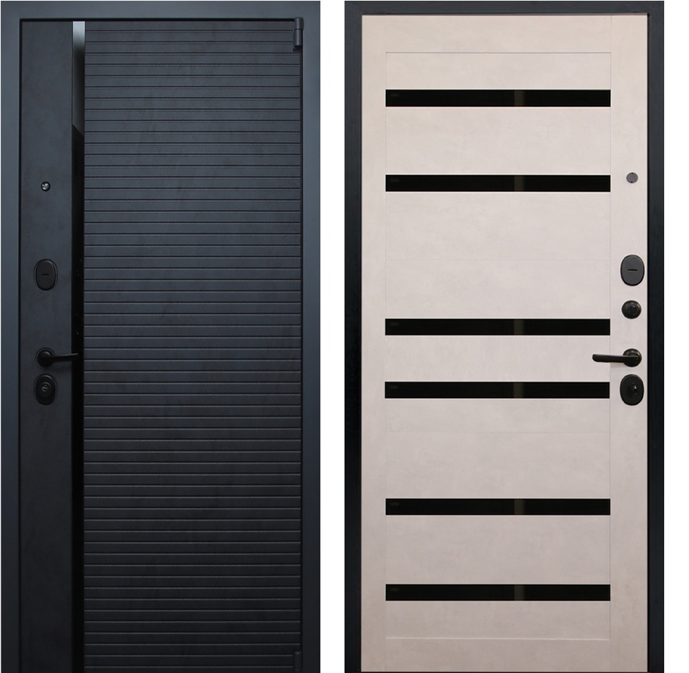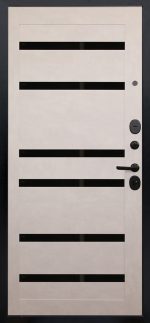 Внутренняя отделка: Панель МДФ 16 мм. Горизонтальные вставки из черного лакобеля. Цвет «бетон снежный».