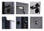 Фурнитура: Ручка, глазок ночная задвижка на круглой розетке. Цвет «черный». Смотрите также: ДВЕРНЫЕ ГАДЖЕТЫ