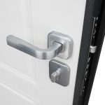 Фурнитура: Ручка, глазок на квадратной розетке. Цвет «хром матовый».Смотрите также: ДВЕРНЫЕ ГАДЖЕТЫ