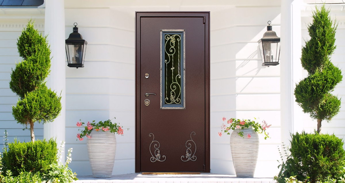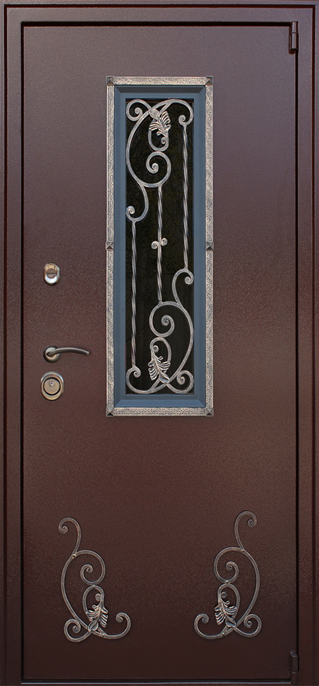 Главная Двери на заказ Стальная дверь «Престиж». С окном и ковкой. Заказная модель.