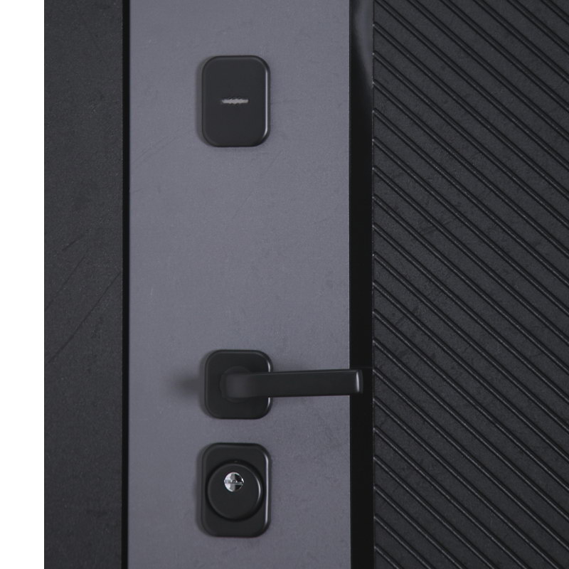Фурнитура: Ручка, ночная задвижка, глазок на квадратной розетке. Цвет фурнитуры «Черный». Смотрите также: ДВЕРНЫЕ ГАДЖЕТЫ