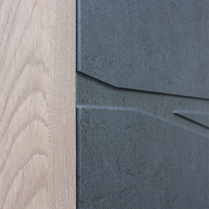 Внутренняя отделка: Панель МДФ 16 мм. Объемная фрезеровка. Комбинированный цвет: «штукатурка графит», «дуб европейский красный».