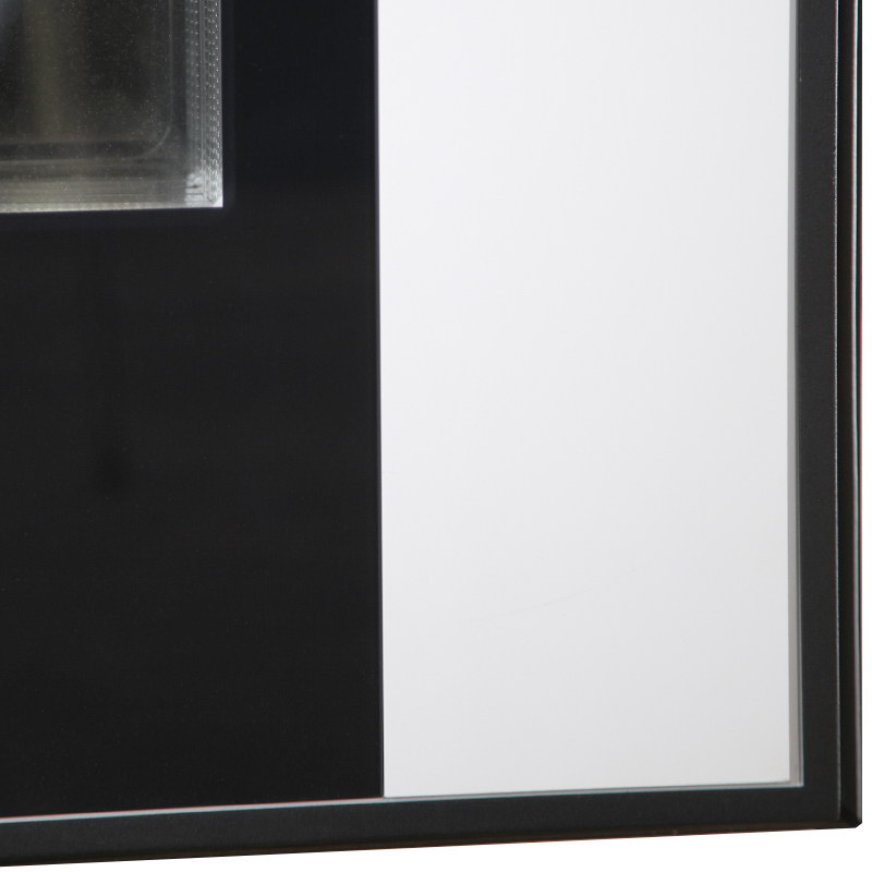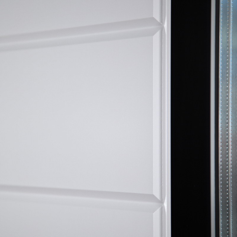 Внутренняя отделка: Панель МДФ 12 мм. Цвет «эмалит белый». Объемная фрезеровка. Стеклопакет. Декоративный накладной элемент из черного лакобеля.