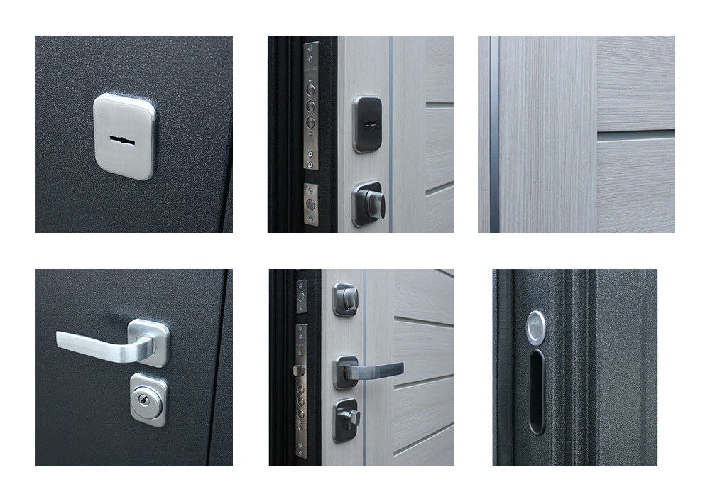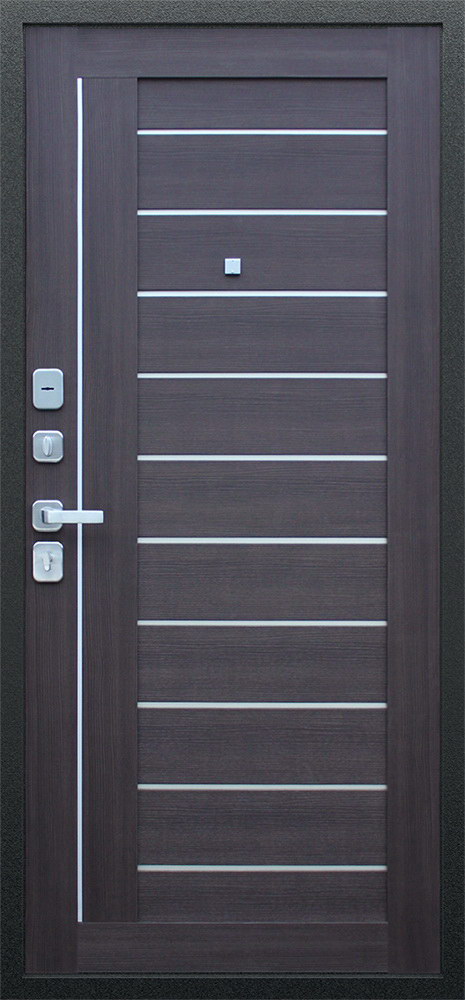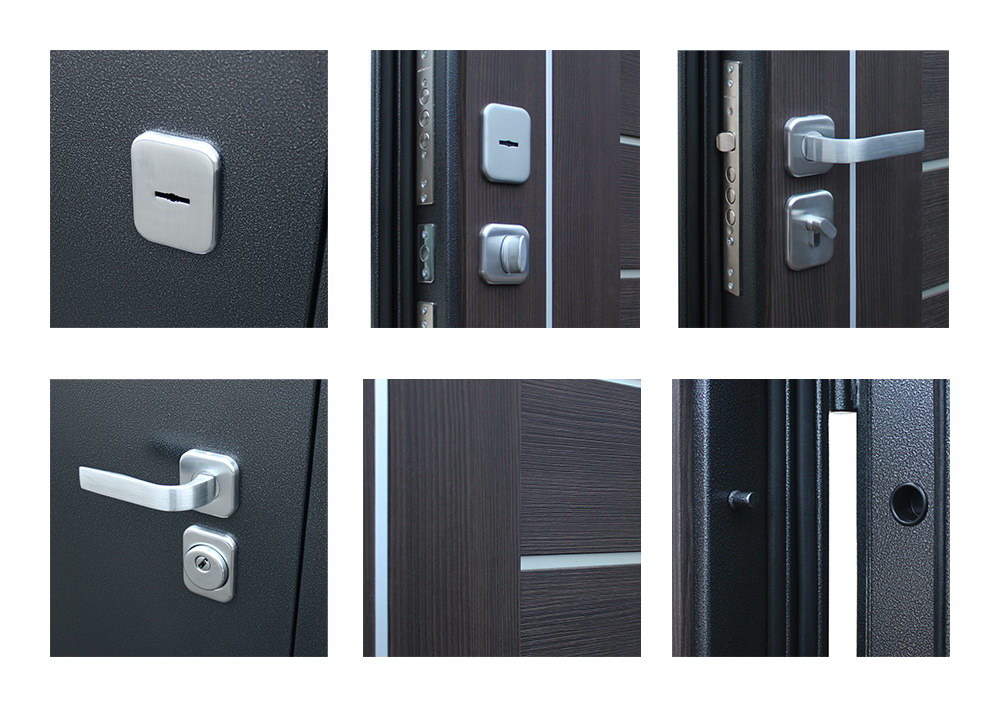 Фурнитура: Ручка, ночная задвижка, глазок на квадратной розетке. Цвет «хром». Смотрите также: ДВЕРНЫЕ ГАДЖЕТЫ