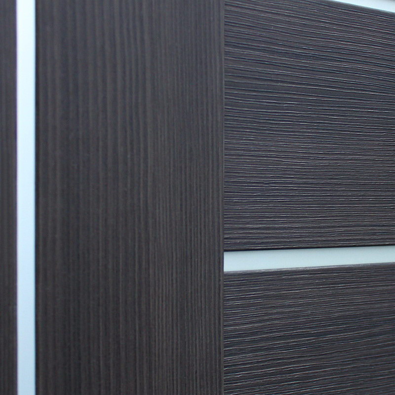 Внутренняя отделка: Экошпонированная сборная панель МДФ 16 мм. Горизонтальные вставки из светлого матового стекла. Вертикальная вставка из молдинга в цвете «хром». Доступные цвета: «белая лиственница», «орех рифленый».
