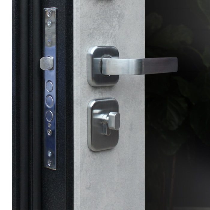 Фурнитура: Ручка, глазок, ночная задвижка на квадратной розетке. Цвет «хром матовый». Смотрите также: ДВЕРНЫЕ ГАДЖЕТЫ