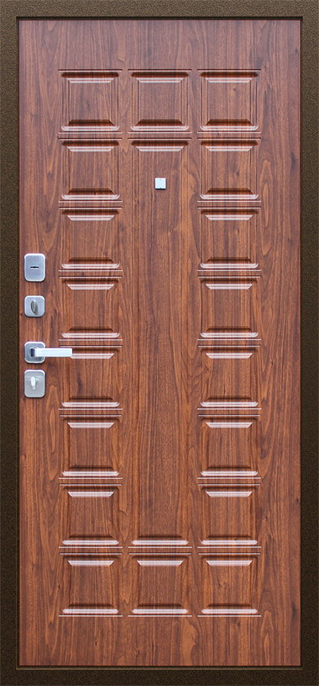 Фурнитура: Ручка, ночная задвижка, глазок на квадратной розетке. Цвет «матовый хром». Смотрите также: ДВЕРНЫЕ ГАДЖЕТЫ